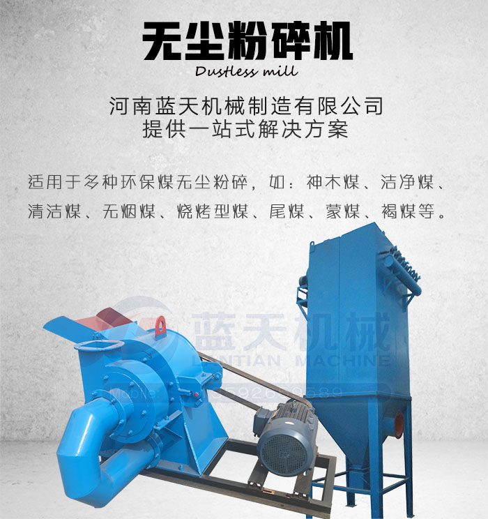 河南藍天機械制造有限公司生產的無塵粉碎機專業針對潔凈型煤、清潔型煤、無煙木炭、炭粉的粉碎處理,是新型環保無塵粉碎機設備,公司提供一站式解決方案,滿足用戶需求的同時不斷提升環保無塵粉碎機技術,專業無塵粉碎機廠家請認準“藍天”!
