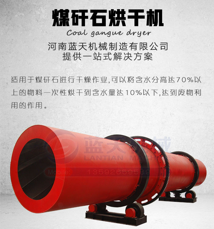 煤矸石是采煤過程和洗煤過程中排放的固體廢物,作為礦業(yè)固體廢物的一種,煤矸石棄置不用,占用大片土地,而煤矸石烘干機(jī)的出現(xiàn)可將其“變廢為寶”,使其產(chǎn)生巨大的利用價(jià)值。河南藍(lán)天機(jī)械制造有限公司生產(chǎn)的煤矸石烘干機(jī)對(duì)煤矸石烘干有很好的效果,以其熱效率高、生產(chǎn)能力大、使用壽命長等優(yōu)勢被國內(nèi)外用戶所喜愛。煤矸石是采煤過程和洗煤過程中排放的固體廢物,作為礦業(yè)固體廢物的一種,煤矸石棄置不用,占用大片土地,而煤矸石烘干機(jī)的出現(xiàn)可將其變廢為寶,使其產(chǎn)生巨大的利用價(jià)值。河南藍(lán)天機(jī)械制造有限公司生產(chǎn)的煤矸石烘干機(jī)對(duì)煤矸石烘干有很好的效果,以其熱效率高、生產(chǎn)能力大、使用壽命長等優(yōu)勢被廣大用戶所喜愛,是建材設(shè)備中收益回收快的設(shè)備,設(shè)備型號(hào)齊全、工作能力強(qiáng),值得投資。